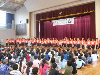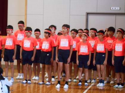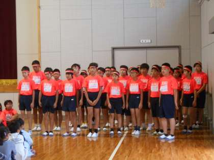 1年生〜5年生の前で、各種目ごとに当日に向けて決意表明を行いました。