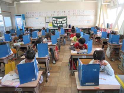 真剣にテストに取り組んでいます。見直しもしっかりがんばりましょう!