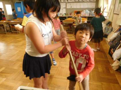 掃除中は他学年へ声掛けをたくさんできていました。最後は,振り返り活動を全員でしました。