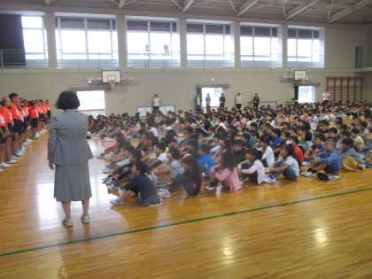 連運に先駆け,壮行会が開かれました。学校のみんなの期待を背負いって,6年生の皆さんがんばってください。