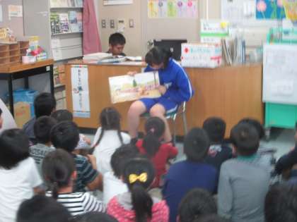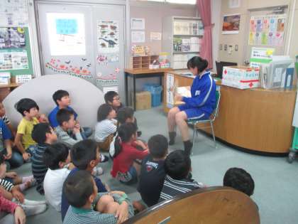 職場体験に来た中学生のお姉さんに本を読んでもらいました。