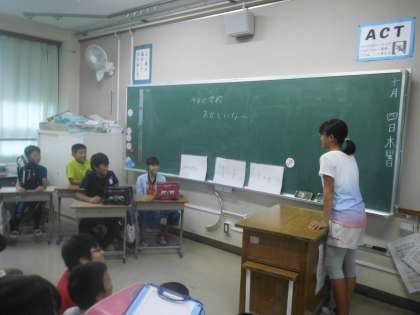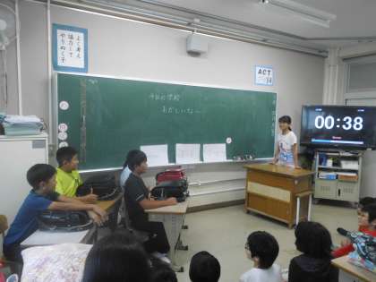 お笑い係が劇をしました。みんなを楽しませてくれました。