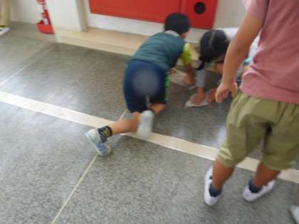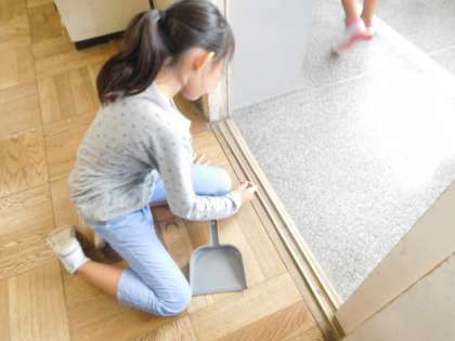 教室の隙間に入り込んだごみを見つけて掃除してくれました。また,友達と一緒に目標を決めて廊下の床ぶき掃除をしてくれていました。