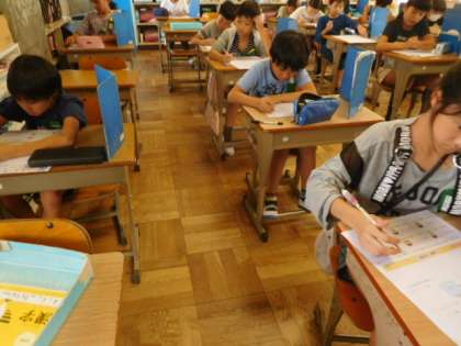 面積のテストをしました。単位の変換や面積の部分的な場所を求める問題に集中して取り組みました。