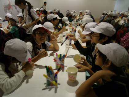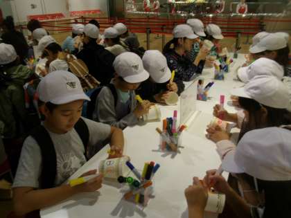 カップに思い思いの絵を描きます。