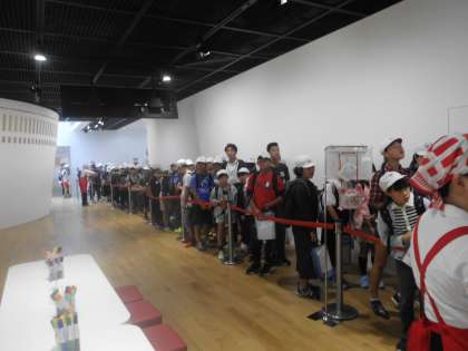 カップヌードルミュージアムへ到着。スタッフの人から説明を聞き,まず容器に好きな絵を描きました。