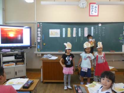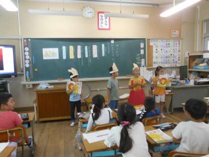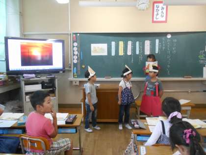 ゆうやけの音読発表劇をしました。それぞれの台詞をどんな読み方をすればいいかをみんなで考えました。