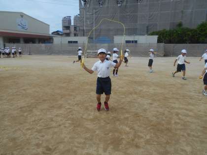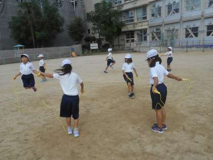 短縄の練習をしています。休み時間にしている子もいて頑張っています。