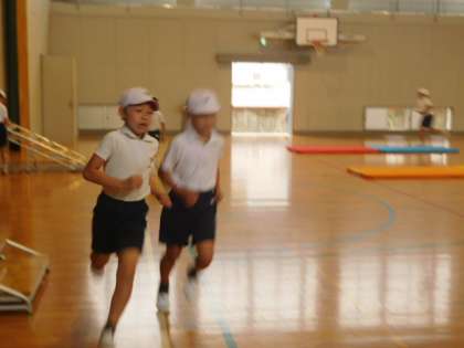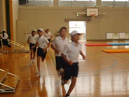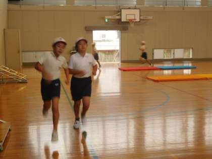 授業の始まりは5分間走からです。世界旅行マップでは,「イタリア」まで到着した子がいました。