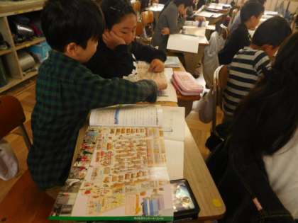 教科書のスーパーマーケットの様子で気づいたことを発表しました。