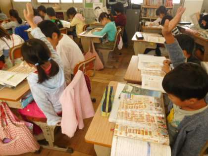 見学に行ったスーパーマーケットと似ているところや違うところを見つけて,発表しました。
