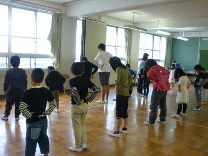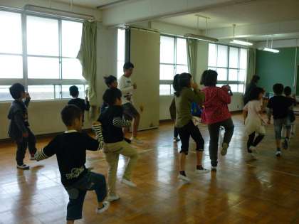 今日から生活科ルームでの練習が始まりました。実際に披露する舞台と同じ広さを体感しました。