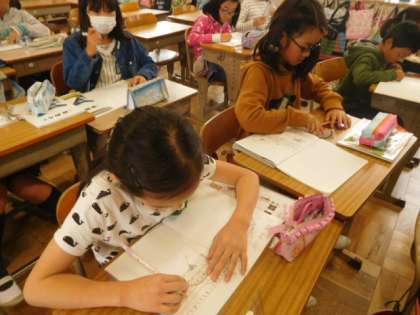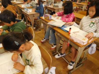 分度器と三角定規をくるくる動かしながら,角度を測りました。