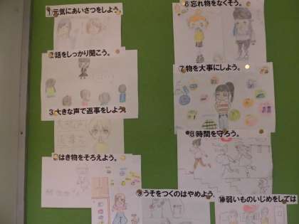 今日の漫画・イラストクラブは、東浅香山小学校の10の約束を分かりやすくイラストで描きました。玄関左側に掲示しています。