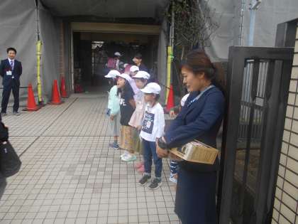 2年生のあいさつ運動がスタートです。1組が大きな声でがんばりました。