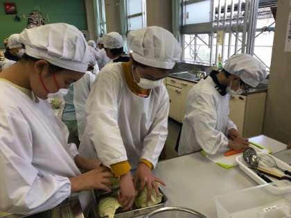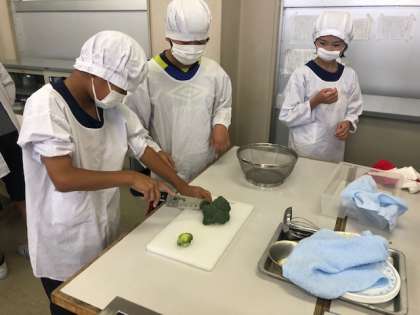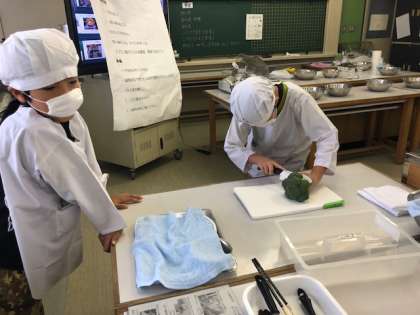 野菜を切るのは,大きさや形を考えながら慎重に切っていました。