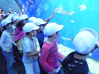 長いエスカレーターを昇ると・・・たくさんの魚がいました。