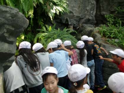 エスカレーターを昇って,生き物たちに会いに行きました。