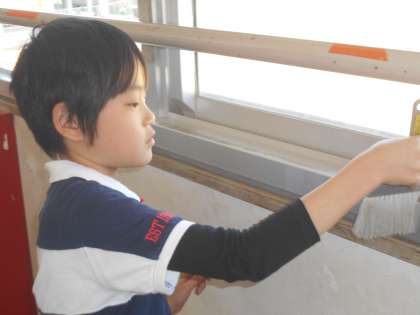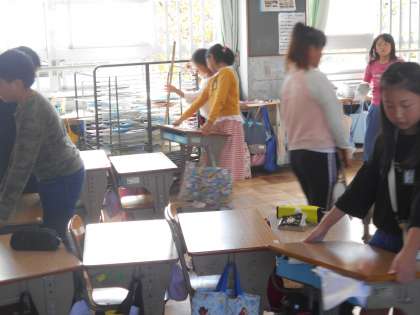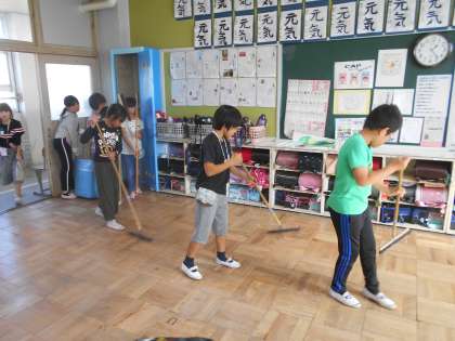 美化レンジャーをお手本にして,列になってはいたり,てきぱきと机を運んだり,すみずみまで丁寧に掃除できています。静かにもくもくと掃除する姿勢が身についてきています