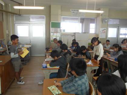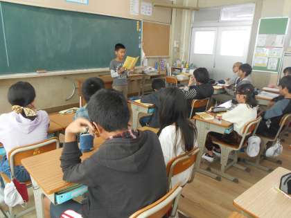 明日の「子どもの主張」に出るクラスメイトの意見文をみんなで聞きました。