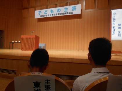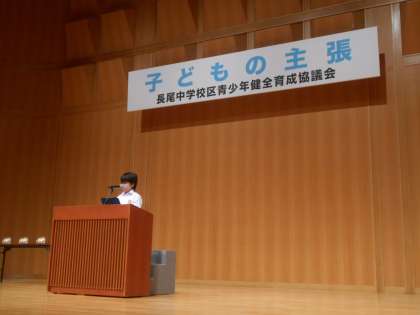長尾中学校区健全育成協議会の事業として、子どもの主張が開催されました。