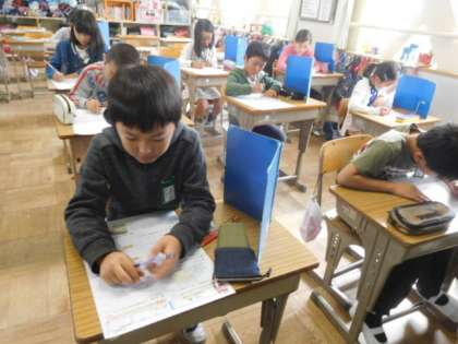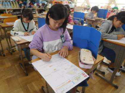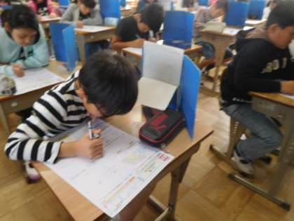 「角」の単元テストをしました。苦手なところは自主学習で振り返りをしましょう。