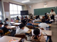 発表の材料づくりを進めています。レイアウト用にミニ新聞を作る班もいます。