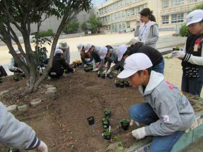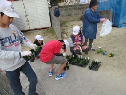 苗を植えるために抜いた花を,家で活けるために持って帰っている人がいました。