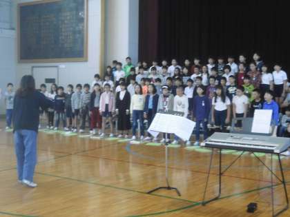 今日は朝の練習のあと,そのまま合同練習がありました。毎回,始める前に実行委員の児童がめあてを発表して練習をします。朝の練習も合同練習も残り2回ずつです。連合音楽会で全力が出せるよう,しっかり練習に取り組みました。