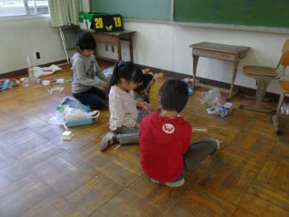 自分たちのおもちゃで遊びながら,工夫したらいいところなどを見つけます。