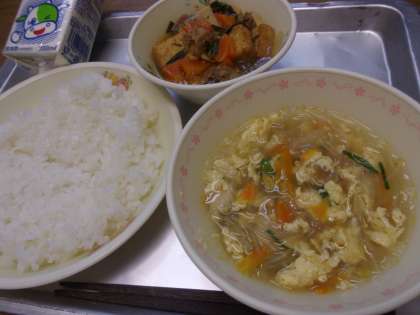 春雨は、つるつるした食感がおいしい食品で、今日は四川風スープに入っていました。