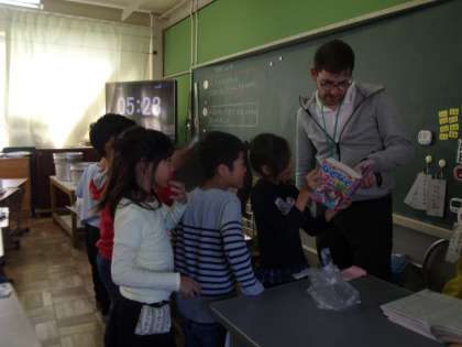 牛乳パックのたたみ方を教えていた子,早く食べ終わって星座占いやおすすめの本を教えている子もいました。