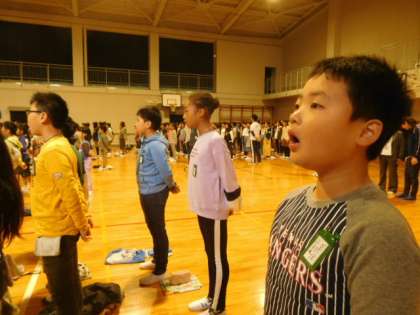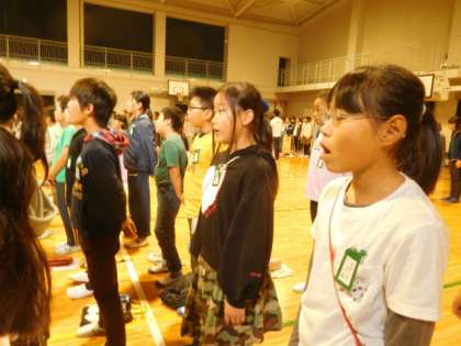 5年生の歌声を聞かせてもらう前に,全校児童で応援の気持ちを込めて校歌を歌いました。
