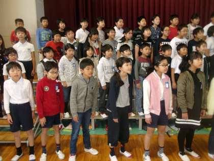 とうとう朝練最後の日を迎えました。全校生に歌声で感謝を表します。
