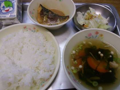 すまし汁・キャベツのごま酢かけ・さばのみそ煮