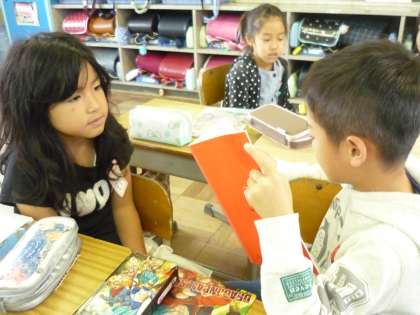 みんなで使うものを使うときに大切なことや気をつけなければいけないことを考えました。考えたことをペアで合いました。