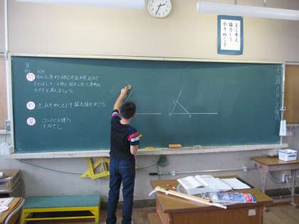 コンパスや定規を使って説明しながら書いていきます。