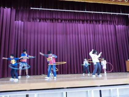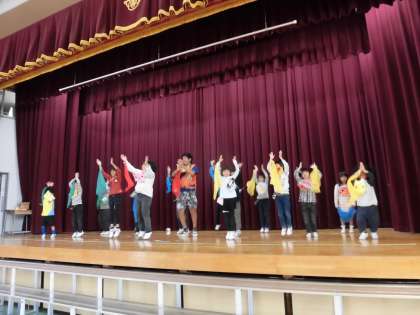 みんなで踊るUSAのダンスは、スカーフを持って踊ることになりました。カラフルでとても綺麗です。みんなもノリノリで踊っています。