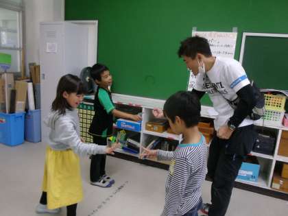 片足を出すじゃんけん,指の数で勝負するじゃんけんなど。
