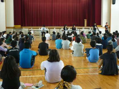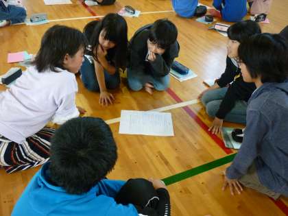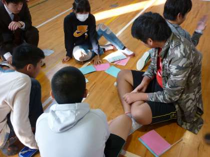 にんげん学習交流会で東三国丘小学校に行きました。少し恥ずかしそうにしていましたが、グループごとにテーマに沿った自己紹介をすることができました。