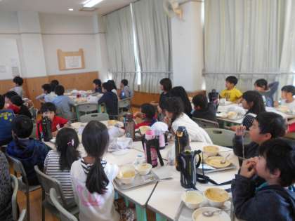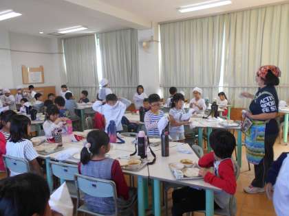 最後には,栄養教諭の先生から給食献立クイズを出してもらい,2年生と一緒に考えて盛り上がっていました。