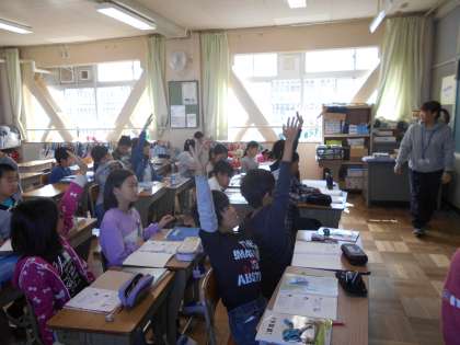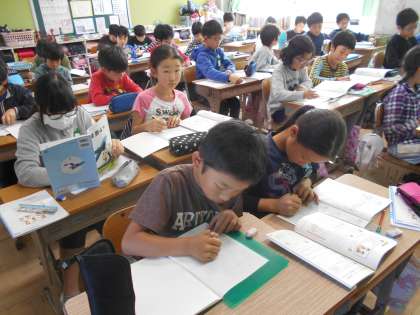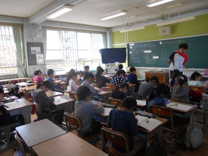 小数のたし算のしかたを考えています。位をそろえることに気をつけて,計算しています。