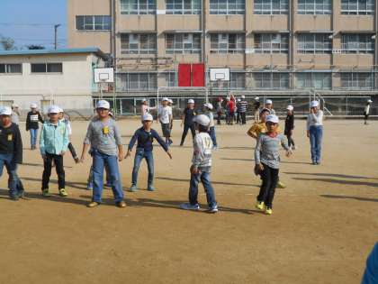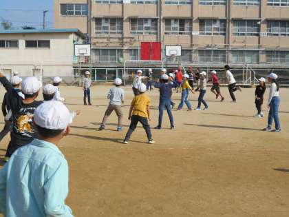 気持ちのいい秋晴れの中,みんな遊びのドッジボールです。ジム会社のメンバーはするどいボールを投げます。