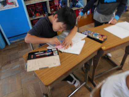 先週の自主学は「自分のベスト自主学」をテーマにがんばりました。がんばった部分に付箋を貼り,見てほしいところを書きます。
