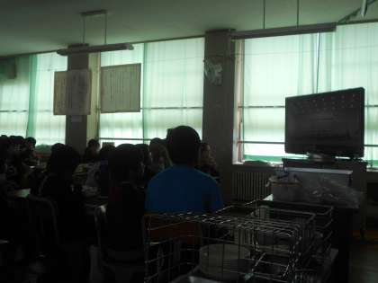 今日は、給食時間に5年生の連音のDVDが流れました。