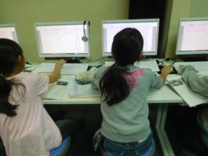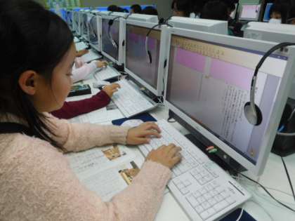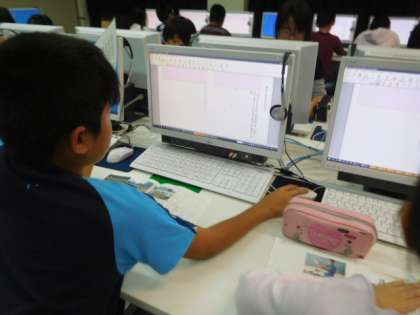 クラブリーフレットを作成しています。キーボードの打つことにだんだんと慣れていってほしいと思います。