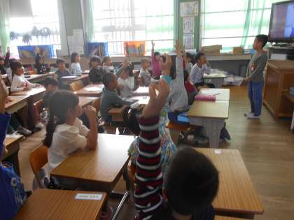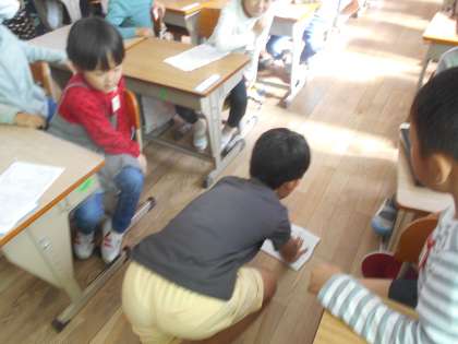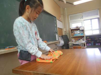 ひろがれえがおの学習です。家の仕事をしてみての工夫や感想を発表しました。