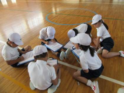 まずは,チームで,今日の目あてを決め,作戦を立てます。