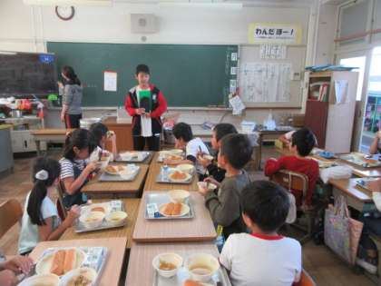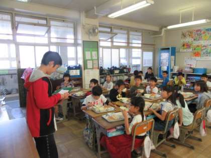 最初に,5年生が教室に来てくれて,お手紙のお礼とビデオの紹介をしてくれました。