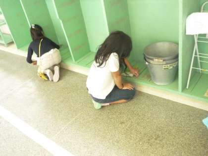 協力して掃除しています。時間いっぱい掃除してくれていました。